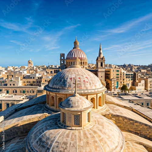 © samsulalam, Fototapeta premium Domes of the collegiate church of st. Lawrence under blue sky in birgu, malta
