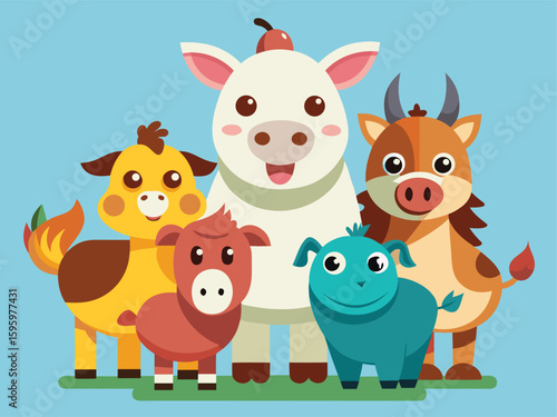 © alhajantor, Naklejka premium Domestic Animals Vector Flat Illustration