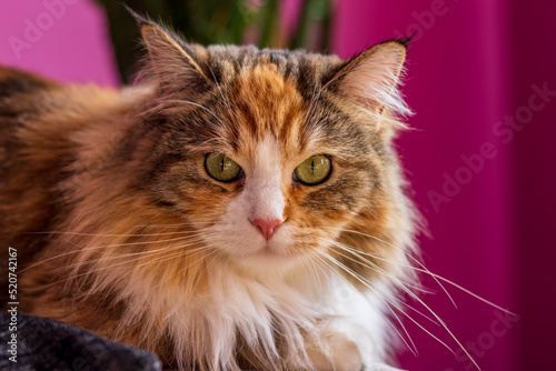 Fototapeta premium Domestic cat on a purple background.