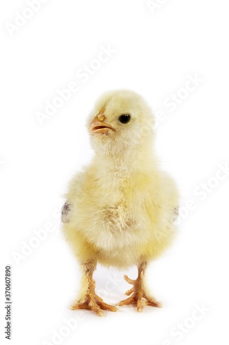 © slowmotiongli, Fototapeta premium Domestic Chicken, Chick against White Background