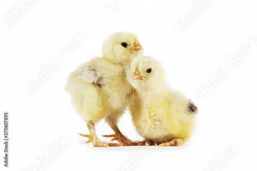 © slowmotiongli, Fototapeta premium Domestic Chicken, Chicks against White Background