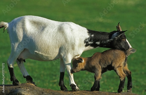 © slowmotiongli, Fototapeta premium Domestic Goat with Kid