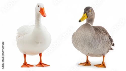 © VirtualVista, Obraz premium Domestic goose and duck on a white background, ideal for educational purposes