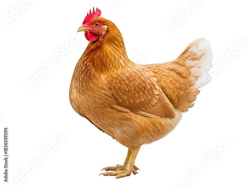 © RK_picto_Ai, Fototapeta premium Domestic hen isolated on white background