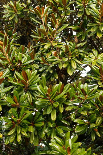 © Aliaksandr, Fototapeta premium domestic outdoor wall decorated with sprouting green leafy plants.