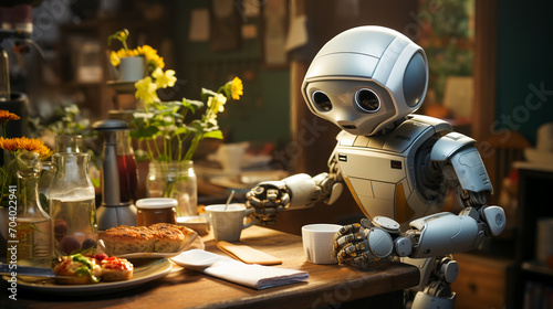 © EwaStudio, Naklejka premium Domestic robot and home assistant. Robot helper or housekeeper