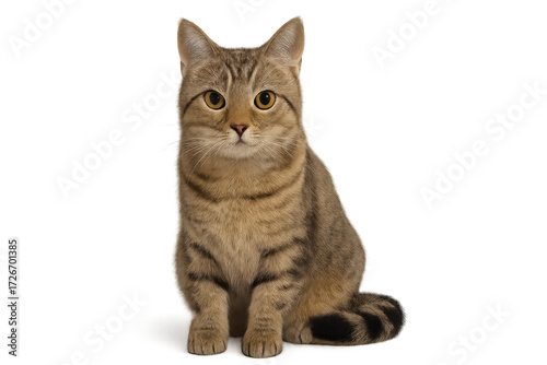 Obraz premium Domestic tabby cat sitting and looking at camera