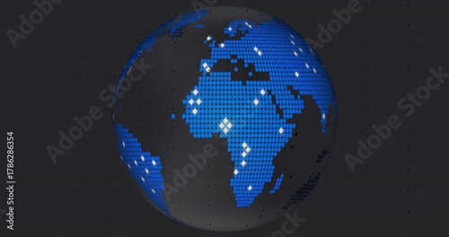 Fototapeta premium Dominating stylized globe showing Africa, Europe, Mideast in digital studio,...
