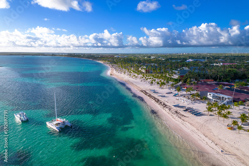 Fototapeta premium Dominican Republic Punta Cana, beautiful Caribbean sea coast with turquoise...