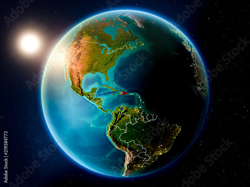 Fototapeta premium Dominican Republic with sunset from space