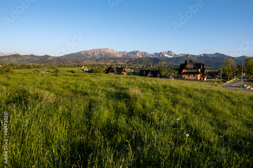 © MagicEarthPlanet, Obraz premium Domki, zachód słońca