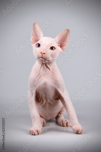 © Aleksand Volchanskiy, Obraz premium Don Sphynx cat on colored backgrounds