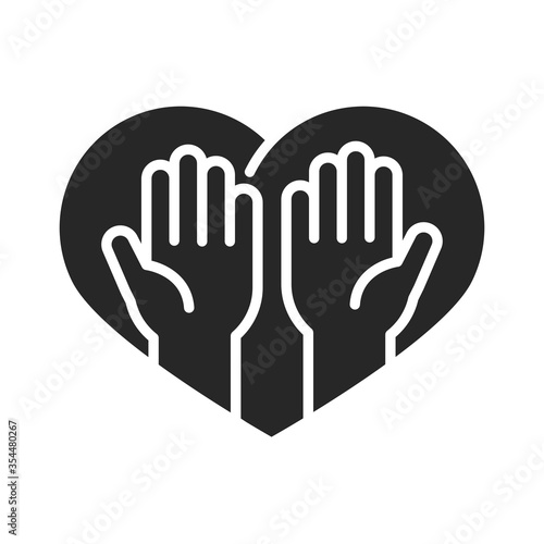 © Stockgiu, Fototapeta premium donation charity volunteer help social hands in heart silhouette style icon