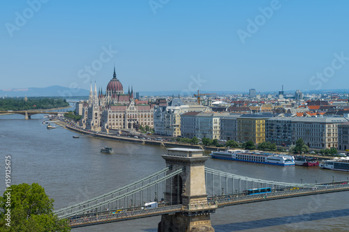 © hk13114, Fototapeta premium Donau in Budapest mit Kettenbrücke und Parlament