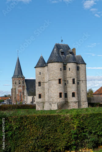 Obraz premium Donjon et église de la commune de Bours dans le Pas-de-Calais - France