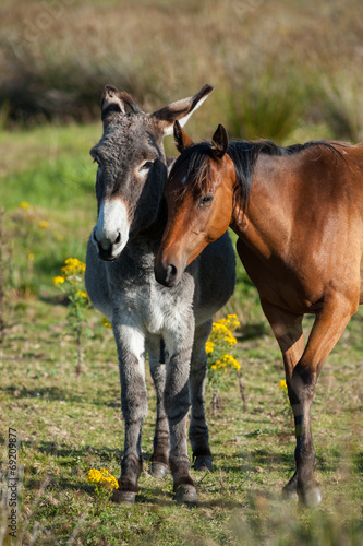 © Gabriel Cassan, Fototapeta premium donkey and horse buddies in a field