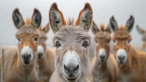 © Tuong, Fototapeta premium Donkey Gazing at Camera in Isolation on White Background