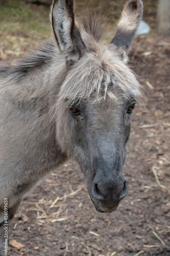 Fototapeta premium Donkey head close-up, wild animal in nature