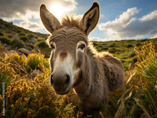Fototapeta premium Donkey in its Natural Habitat, Wildlife Photography, Generative AI