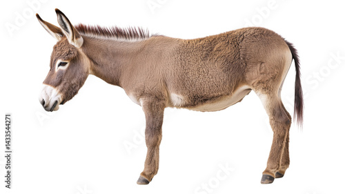 Fototapeta premium Donkey standing on transparent background, domestic animal, side view