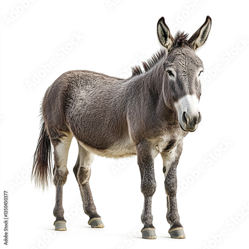 © Thanthara, Obraz premium Donkey standing on white background, looking curious