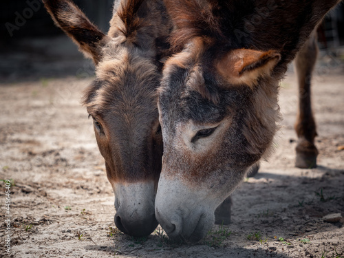 © Michelle Holton, Fototapeta premium donkeys grazing together on a farm