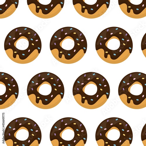 Fototapeta premium Donut seamless pattern. Pattern with a donut in glaze. The pattern is suitable for prints, posters, fabrics, wrapping paper.