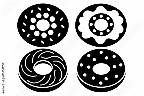 © Pinak, Fototapeta premium donut set line art silhouette vector illustration