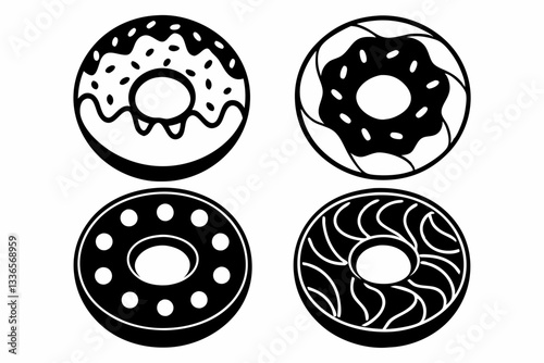 © Pinak, Fototapeta premium donut set line art silhouette vector illustration