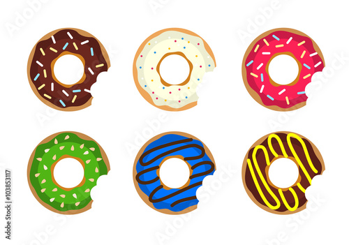 © Alejik, Fototapeta premium Donut vector set. Colored donuts with cream and glaze. Sweet foo