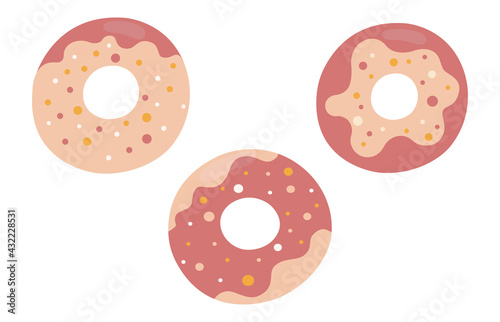Obraz premium Donuts set. Vector illustration in pink colors. Flat design icons.
