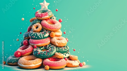 © Irina, Obraz premium Donuts shaped as Christmas tree composition background