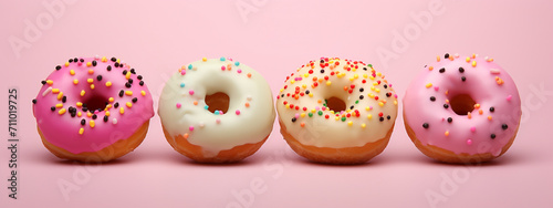 © Артур Комис, Fototapeta premium donuts with glaze on a pink background