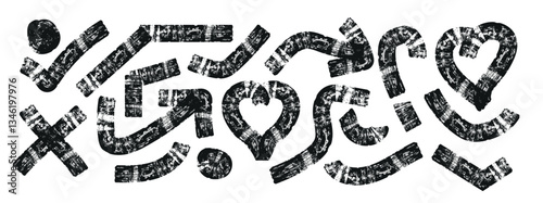 © Rovara Avora, Obraz premium Doodle abstract arrow, circle, texture brush color set. Hand drawn sketch crayon scribble brush geometric shape color chalk effect background. Abstract vector illustration