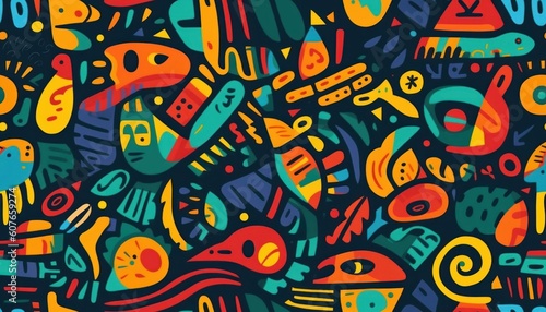 Fototapeta premium Doodle Art Seamless Pattern, Fashion Textile, Sport clothes, Street Art Graffiti Style Background. Generative Ai