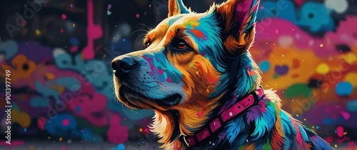 © DEER FLUFFY, Naklejka premium doodle background design, colorful dog graffiti art.