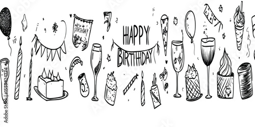 Obraz premium Doodle Birthday Party Elements