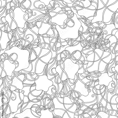© olich15, Obraz premium Doodle black and white abstract hand-drawn vector background. Wavy seamless pattern.