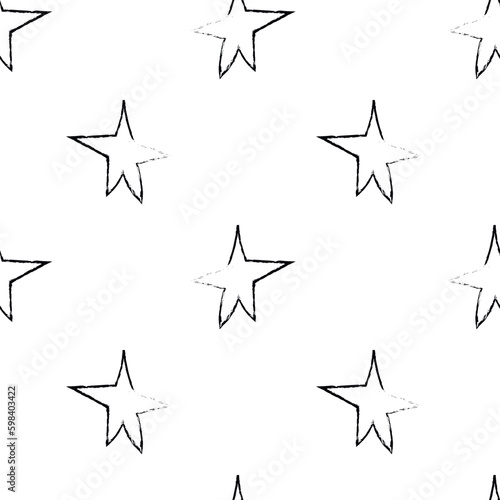 Obraz premium Doodle cosmic seamless pattern in childish style. Hand drawn abstract space stars. Black and white.