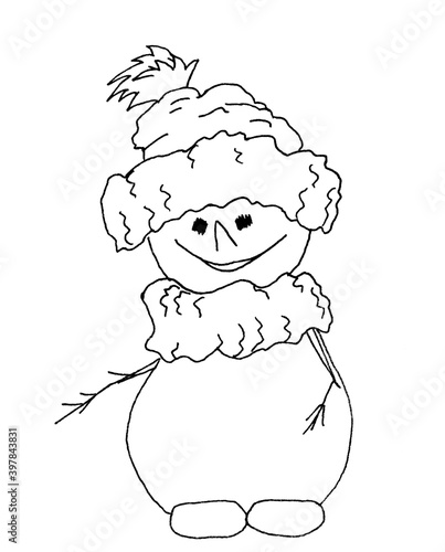 © Arina, Obraz premium Doodle cute snowman girl, cartoon style.