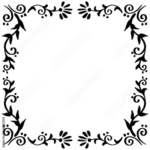 © Handini_Atmodiwiryo, Fototapeta premium Doodle drawing floral frame background on black and white.