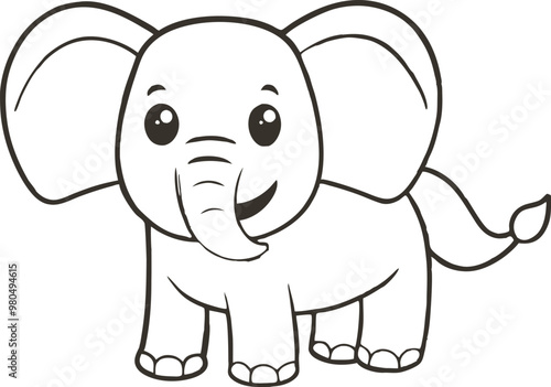 © Nahiduzzaman Shuvo, Naklejka premium Doodle elephant outline simple cartoon Illustration of a Gray Elephant with Large Ears and a Trunk