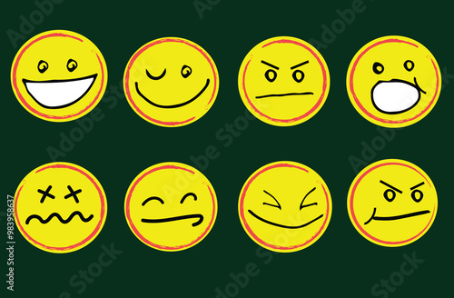 © LOVE A Stock, Fototapeta premium Doodle Emoticon Face Icon Set. Hand Drawn Sketch Emoji with Different Emotion and Mood. Vector illustration