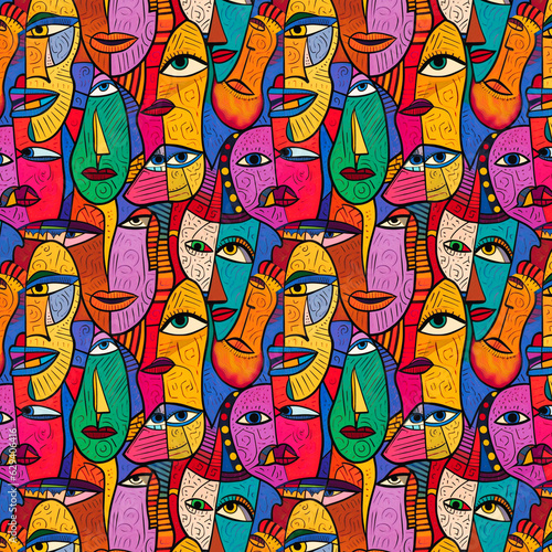 © kishoredharuman, Obraz premium Doodle Eyes Art Seamless Pattern Background Wallpaper 5