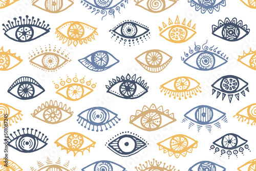 © SunwArt, Naklejka premium Doodle female eyes cartoon repeatable ornament.