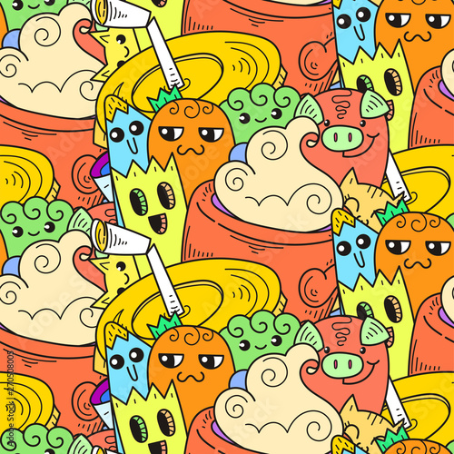 Obraz premium Doodle hand-drawn cartoon with smiles and taste, coffee shop theme seamless...