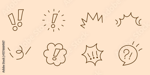 © RadheK , Fototapeta premium Doodle hand drawn cute cartoon expression sign. Line curve arrows, emoticon elements, symbols