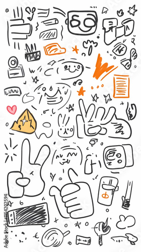 © Nadiyah, Obraz premium Doodle Hand Gesture Illustration Background Design Elements.