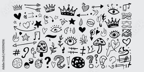 Fototapeta premium Doodle Icons and Signs Hand Drawn Set