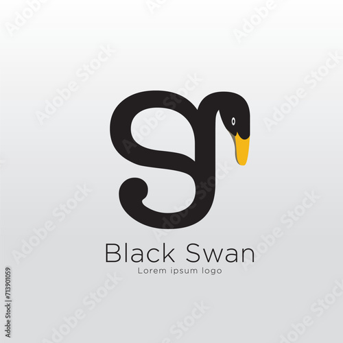 Fototapeta premium Doodle illustration of black and white swan for logo